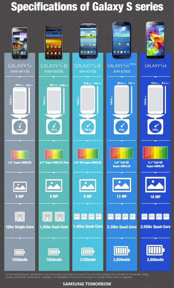 همین دیشب بود که سامسونگ پرچمدار 2014 خود را رسما معرفی کرد و ویژگی های جدید آن را دیدید و ویدیو بررسی این محصول را نیز برایتان پوشش دادیم اگر حوصله ی خواندن یا حجم دیدن این اخبار را نداشتید حال با ما همراه باشید تا یک نیم نگاهی سریع (با یک عکس ) به تمامی امکانات سخت افزاری این محصول به همراه مقایسه سری گلکسی S سامسونگ بیاندازیم.