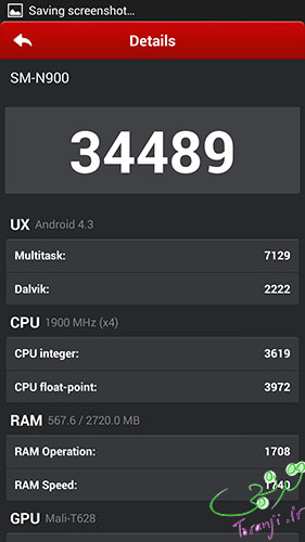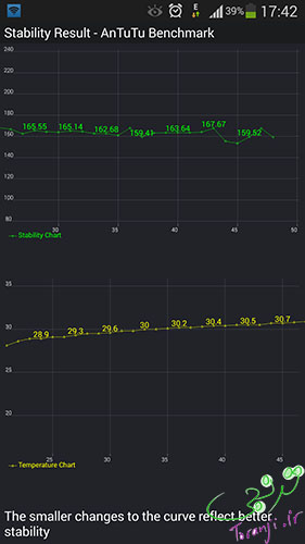 و البته تست جدیدی که در Antutu V4.0 اضافه شده ٬ تست پایداری سیستم است و با این که این نسخه از پردازنده Exynos استفاده می کند ٬ اما پایداری عالی دارد.