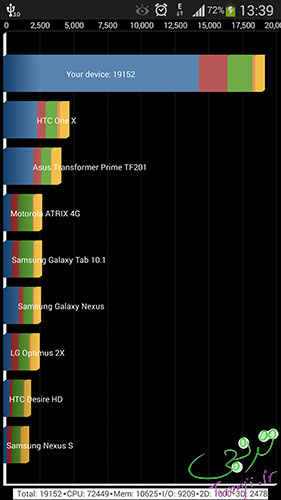 و این نتایج این غول سامسونگ در بنچ مارک های Antutu v4.0 و Quadrant v2.1.1 است.