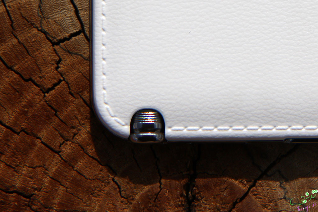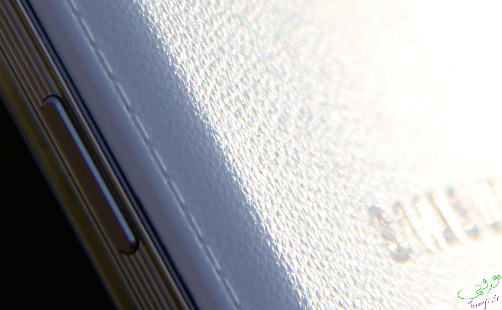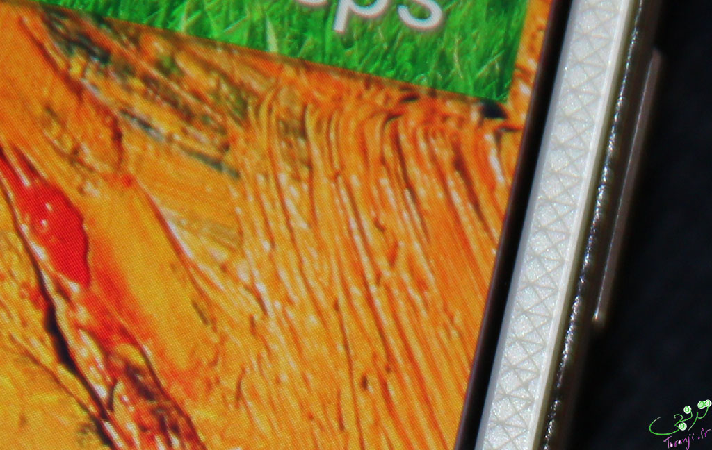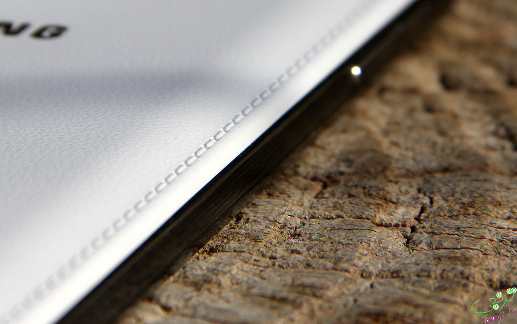 با در دست گرفتن آن هم حس خوبی به شما منتقل می شود. این حس خوب حاصل از سر نخوردن دستگاه در دست و جذب نشدن اثر انگشت است. از لحاظ ظاهری واقعا نمای زیبایی دارد و یادآور دفتر های قدیمی است که چرمی بودند و دورتا دور آنها دوخته شده بود. آنها برای اینکه این حس تکمیل شود ٬ دور تا دور قاب پشتی را هم طرح " دوخته شده با نخ " زده اند.