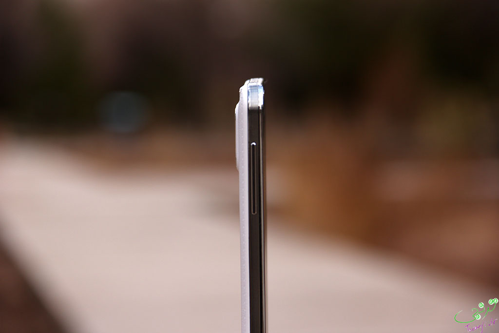 گوشه ها از گردی خود کاسته اند و ما را به یاد گلکسی اس 2 می اندازد ٬ این یادآوری وقتی بیشتر می شود که نگاهی به طراحی دوربین و فلش آن در کنار هم می اندازیم.البته این از نظر ما اتفاق نیکویی است. دور نمایشگر یک نوار نقره ای است مقدار بسیار کمی از سطح نمایشگر بالاتر است تا از نمایشر محافظت کند. دورتادور دستگاه با یک نوار نقره ای که مثل صفحات روی هم کاغذ است ٬ احاطه شده است. حقیقتا این طراحی در دست گرفتن دستگاه را بسیار راحت تر از نسل قبلی طراحی سامسونگ (یعنی گلکسی اس3 و نوت2) کرده است.